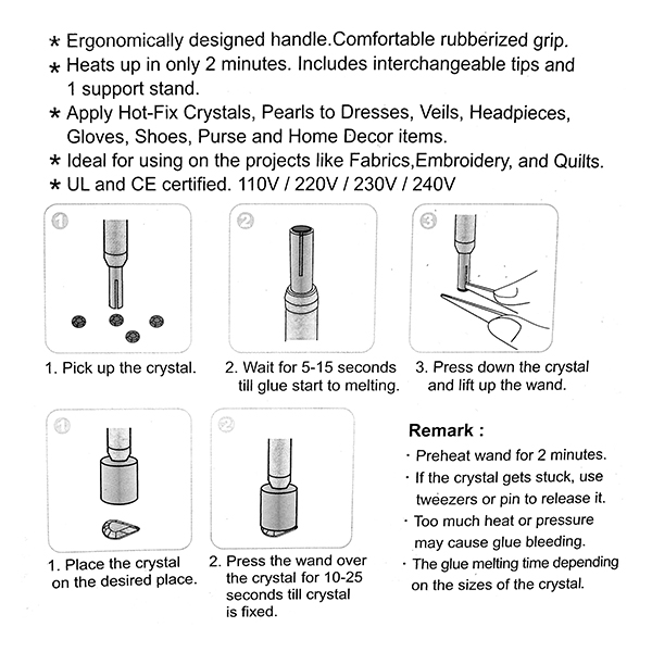 Works seamlessly with all standard hot-fix (heat-activated adhesive back) rhinestones,Covers the most in-demand rhinestone sizes: