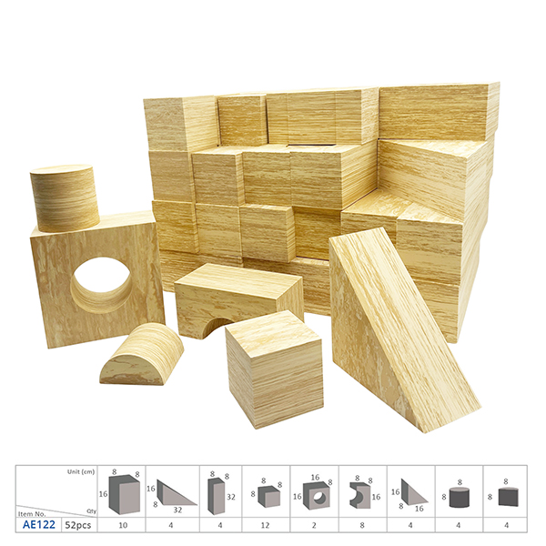 52 Pcs 8cmT Foam Wood Color Large Stacking Blocks Set