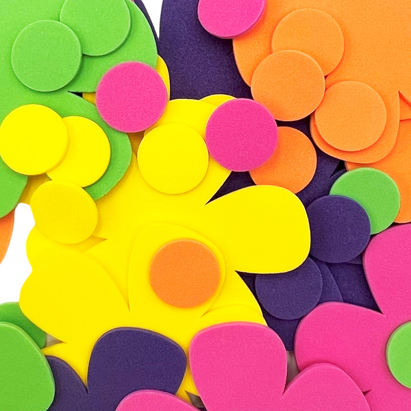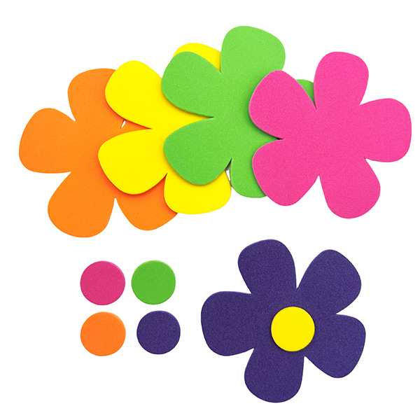 These Non-toxic EVA flowers & circles foam shapes pieces are mix with 5 bright colors. It can make pop-up flower foam decorations, great for many types of art & Craft activities, as well as, the sorting activities for school or at home. Big enough to easily clean any spills. You can purchase our standard product, or, OEM mix the different shapes in our swatch card.